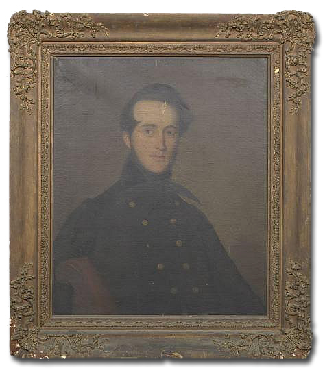 Further research later uncovered the original work the miniature was copied from: a full-sized (24.25 x 29.25 inches) portrait in oil on canvas, painted between 1837 and 1840 by Jacques Guillaume Lucien Amans (1801-1888; a French painter who arrived in 1837 to New Orleans, Louisiana, where he became on of the most prominent portraitists of his day in that city). A copy of Amans' original appears below.