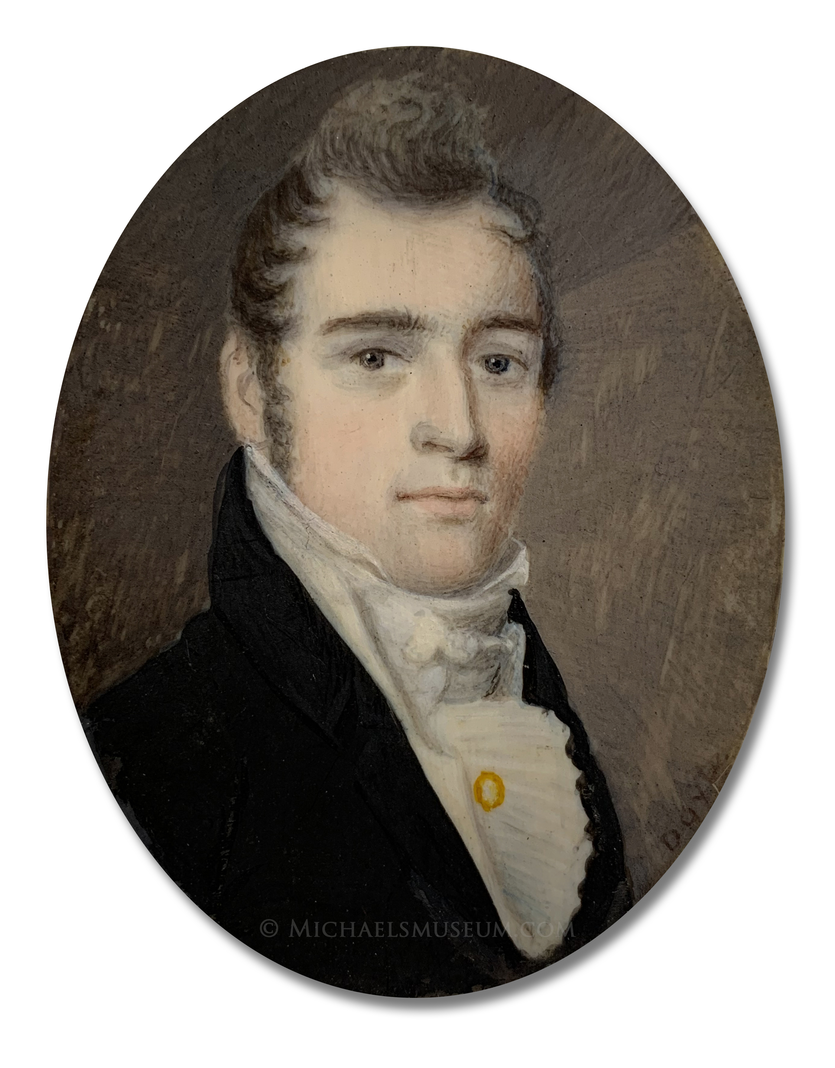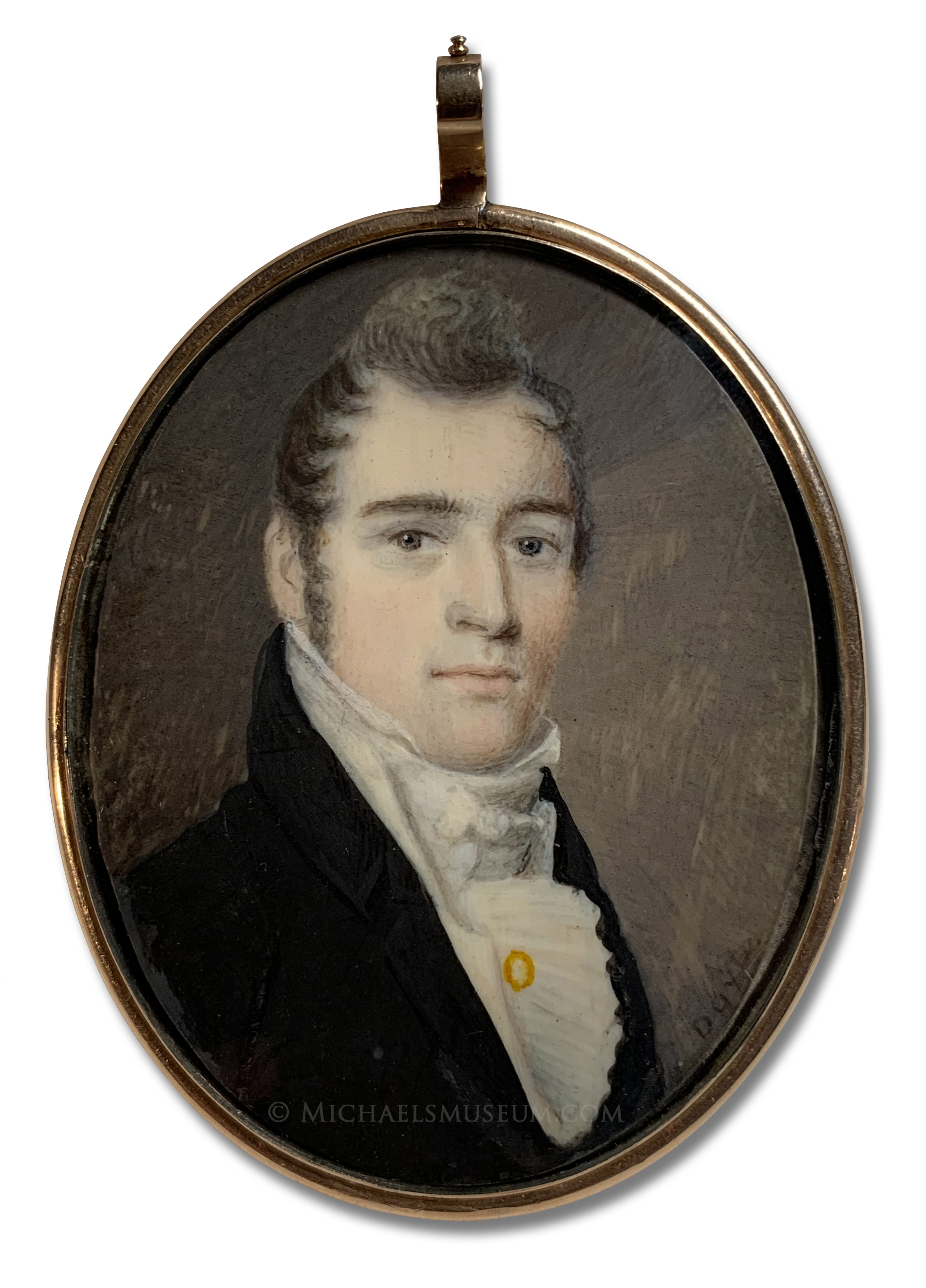 watercolor on ivory; housed under glass in a pendant-style gilt copper case