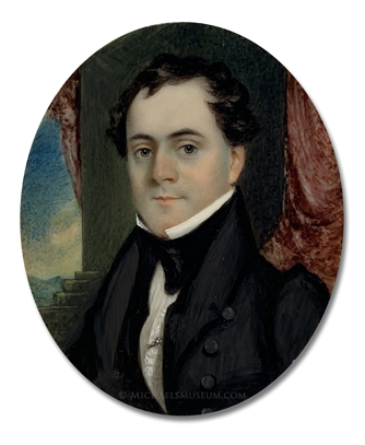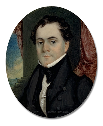 watercolor on ivory; housed under glass in a gilt metal case with a cast foliate border and bail