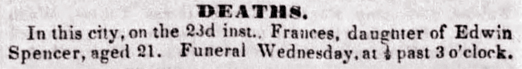 Frances Spencer's newspaper obituary, as appeared in the "Hartford Daily Courant",
